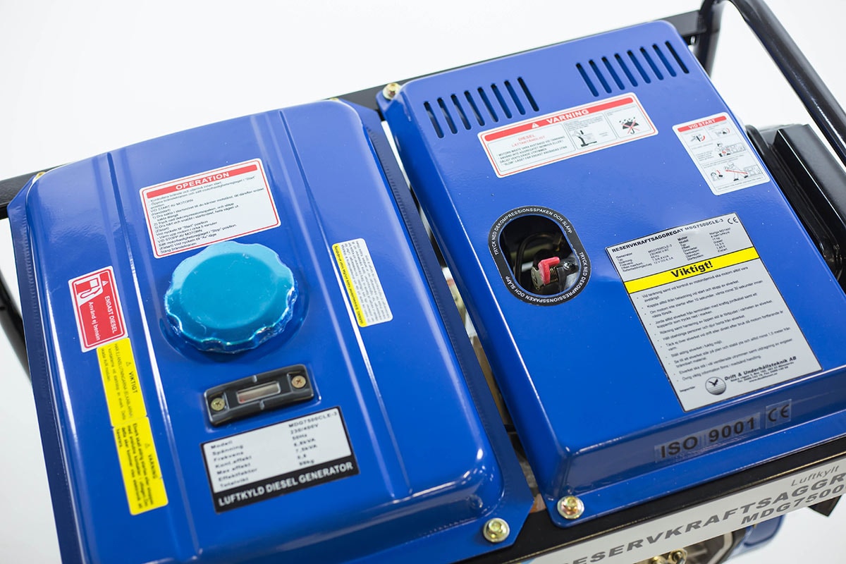 Duab-Power MDG7500CLE-3-vaiheinen dieselaggregaatti, joka on varustettu Mellgan luotettavalla dieselmoottorilla sähkökäynnistyksellä ja kaukokäynnistyksellä.