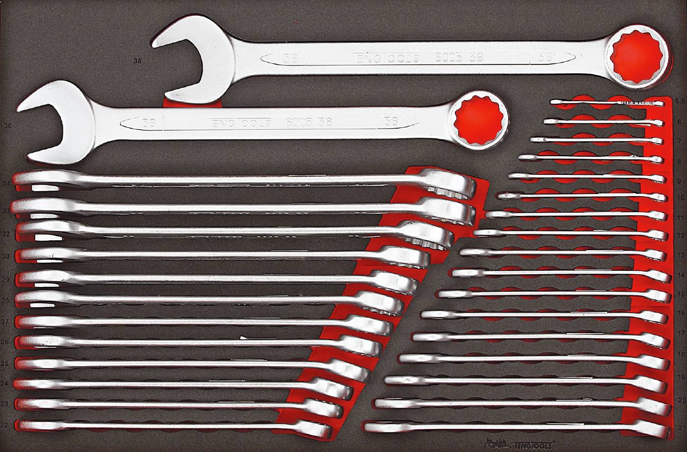 Toimitetaan Teng Toolsin uuden säilytysjärjestelmän mukaisilla kolmivärisillä EVA-vaahtomuovialustoilla, joihin on jyrsitty paikka kullekin työkalulle.