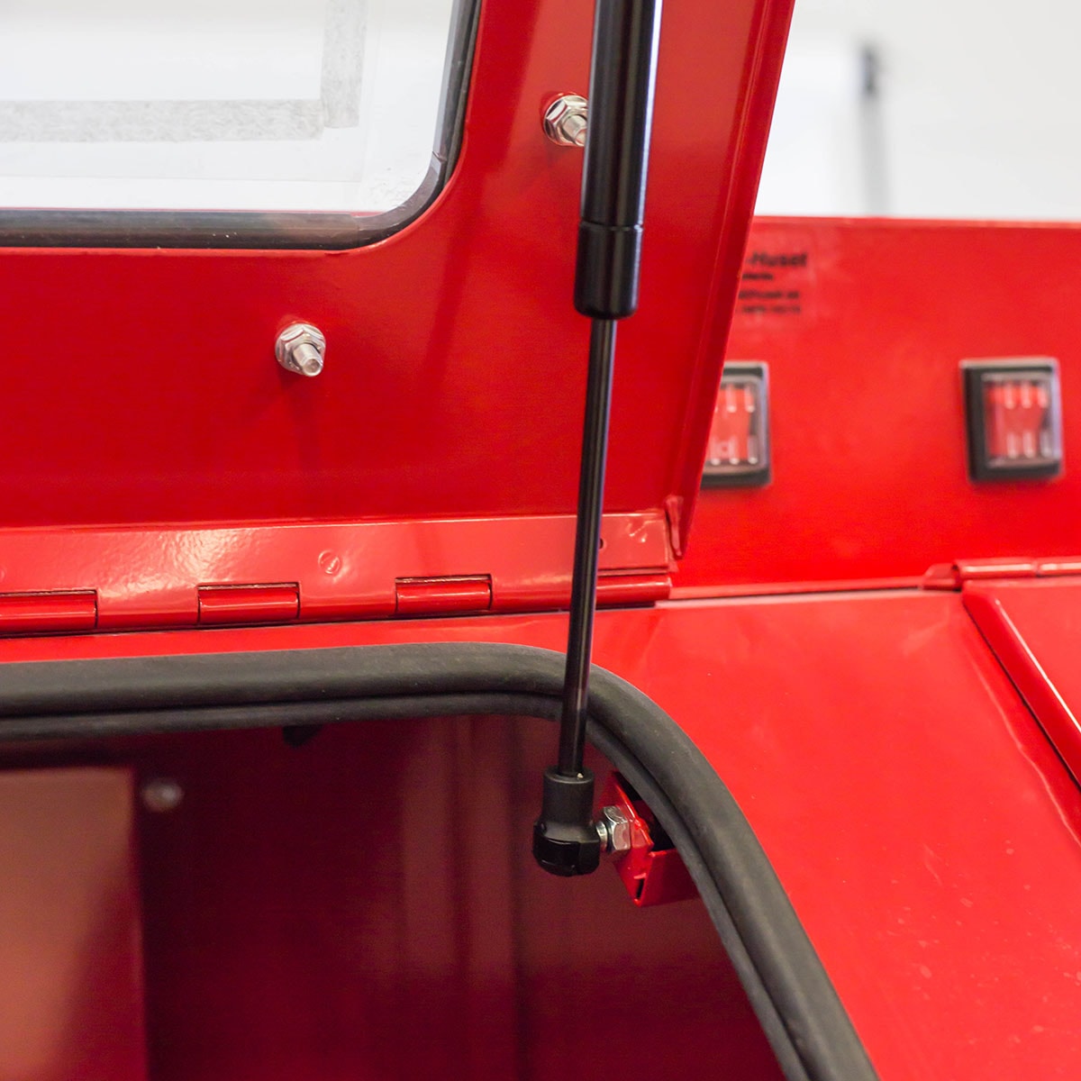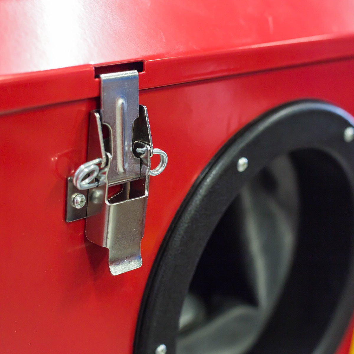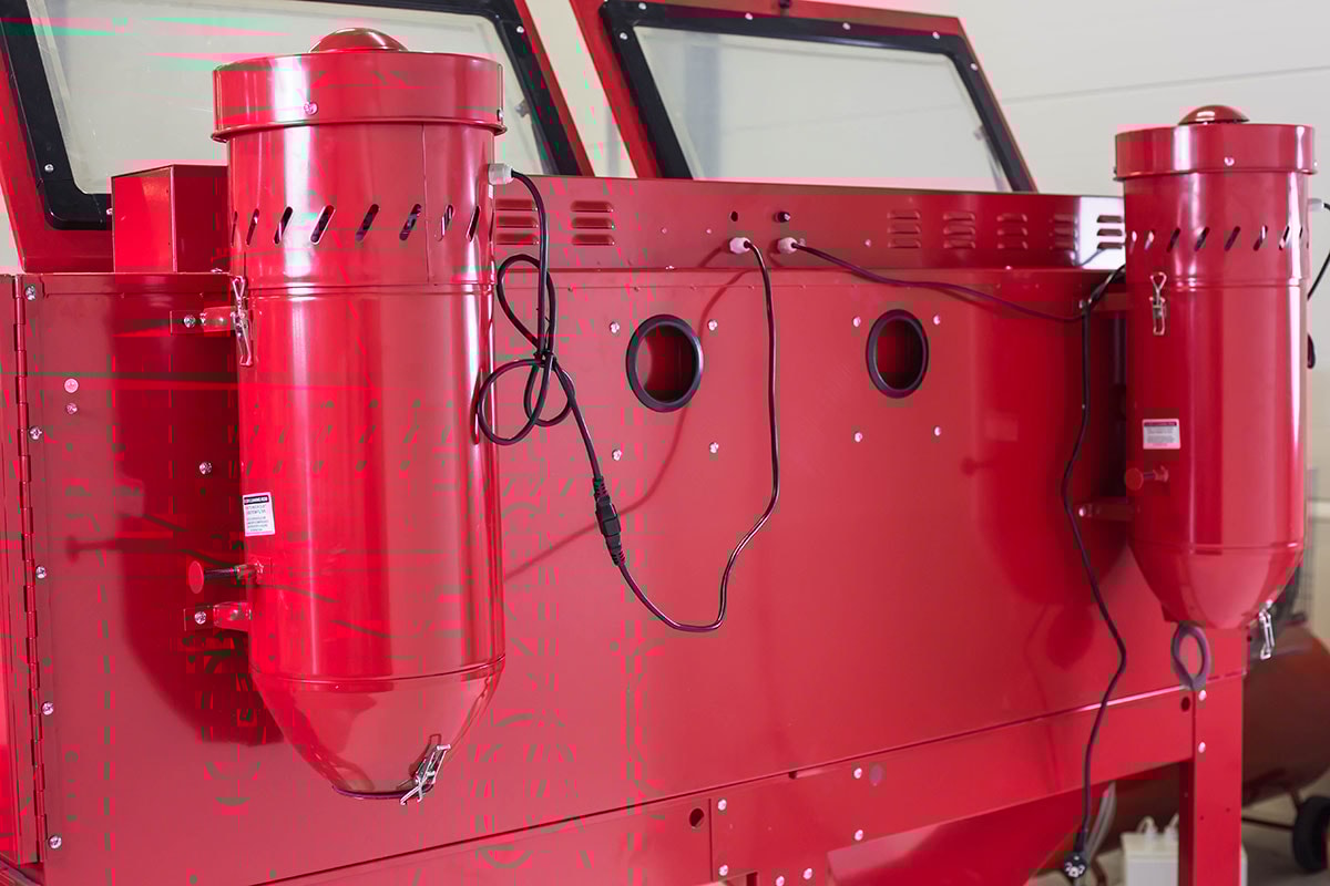 Tehokas puhalluskaappi teollisuusmallia täydet 880 litraa. Tämä erittäin suuri puhalluskaappi on varustettu kahdella rinnakkaisella työpisteellä, kahdella avattavalla etuovella ja kahdella avattavalla sivuovella, mikä tekee työstettävien kappaleiden asettamisen ja poistamisen helpoksi ja käteväksi. Kaappi on varustettu puhalluskäsineillä, kahdella puhalluspistoolilla ja kahdella poistotuulettimella, mikä mahdollistaa optimaalisen näkyvyyden kaapissa työn aikana. Koska puhalluskaappi on varustettu kahdella eri asemalla, on mahdollista käyttää kahta erilaista puhallusainetta samassa kaapissa ilman, että puhallusaineita tarvitsee tyhjentää ja vaihtaa. Kaappi on myös varustettu tukevilla jalkapolkimilla, jotka ohjaavat venttiilejä, jotka vapauttavat puhallusaineen puhalluspistooleihin.