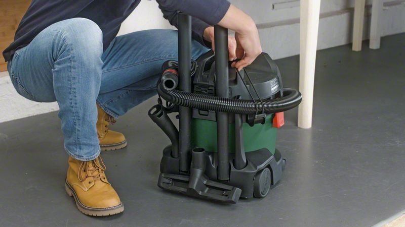 Helppokäyttöinen UniversalVac 15 sopii tehokkaaseen märkä- ja kuivaimurointiin. Se on yleiskäyttöinen ratkaisu, jota voi käyttää lehtien puhaltamiseen, lattioiden imurointiin ja sähkötyökalujen imurina. Tämän jatkuvan pölynpoiston mahdollistavan pölynimurin voi yhdistää suoraan mihin tahansa nykyisen Bosch Home & Garden -malliston ja monien muiden valmistajien sähkötyökaluihin kätevän yleisadapterin ja kartioliitännän avulla.