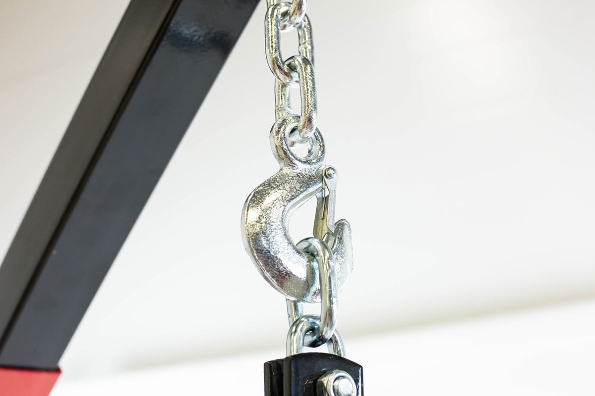 Kuvan korjaamonosturi on varustettu lisävarusteena moottorinostomoottorin vaaitussäätimellä tuotenumero 100699.