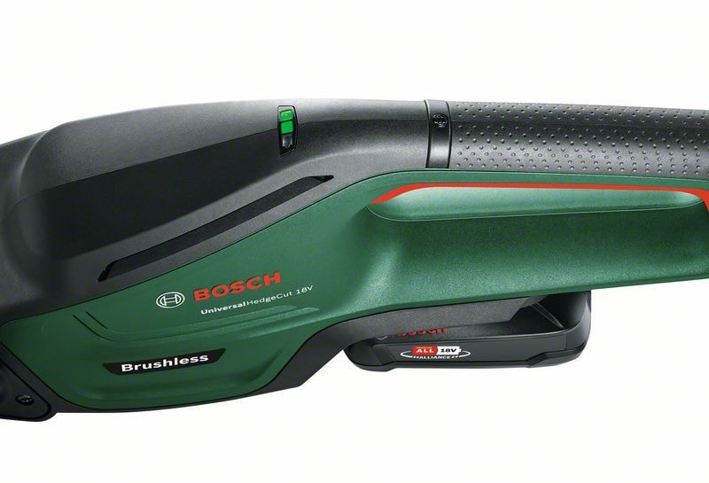Boschin harjattomalla moottorilla varustettu 18V UniversalHedgeCut 18V-50 on tehokas ja erittäin pitkäikäinen akkupensasleikkuri. Sen keveys vähentää käsien rasitusta, mikä mahdollistaa pensaiden vaivattoman leikkaamisen myös pitkäkestoisissa töissä. UniversalHedgeCut 18V-50 on optimaalinen valinta keskikokoisten pensaiden leikkaamiseen; sillä leikkaat kätevästi esimerkiksi havupuu-, likusteri-, laakeri- ja pyökkipensasaidat ja jopa 20 mm:n paksuiset oksat. Sen akun käyttöaika on jopa 75 minuuttia ja siinä on akun lataustilan näyttö, josta näet kätevästi akun varaustilan työskentelyn aikana, niin ettei virta pääse loppumaan odottamattomasti. Sen laserleikattu, timanttihiottu terä on kestävä ja huipputerävä, mikä takaa nopean ja laadukkaan leikkaamisen. Työkalu kuuluu POWER FOR ALL ALLIANCE -järjestelmään. Yhdellä akulla voi käyttää monia erimerkkisiä työkaluja.