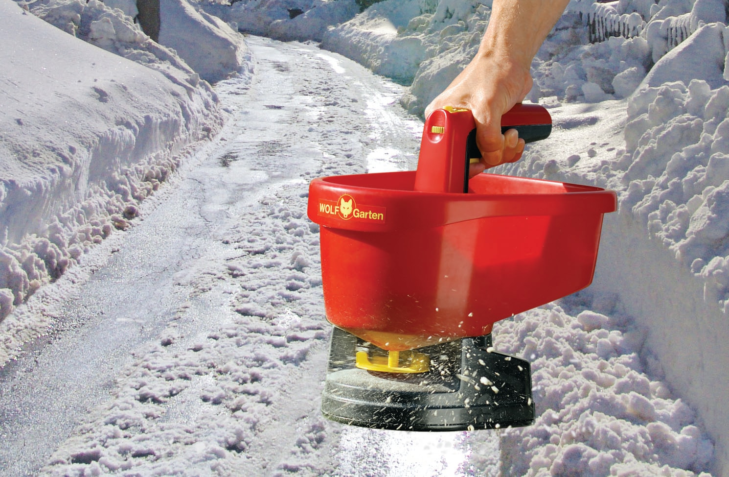 WOLF-Garten Power Spreader on kädessä pidettävä, paristokäyttöinen levitinyksikkö, joka toimii keskipakovoimalla ja pyörivä lautanen heittää materiaalia joka suuntaan. Levitintä käytettäessä on tärkeää kävellä samaa vauhtia, jotta levitys on tasaista.